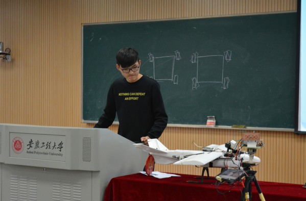 终审于近日在5教116教室举行,由来自机械和电气两个公司的七位专家担任评委。十二件参赛作品的负责人依次上台,通过PPT向评委及在场观众详细讲述每件作品的制作背景、基本功能、创新创意及改进之处,并结合实物进行针对性阐释和功能现场演示,各位评委根据每件作品的设计理念及功能赋予从不同专业角度进行了详细的提问和质询。选手与评委之间的精彩互动及作品现场的精彩演示赢得了在场观众的阵阵掌声。其中,参赛作品“复合翼垂直起降无人机”的展示将比赛带向了高潮,选手通过视频向所有人展示了无人机实际飞行的姿态。最后,机械公司副经理高洪教授代表评委进行点评,他对所有参赛人员及其作品的创新性进行了高度表扬,也对各个作品的不足之处提出了自己的意见及改进方式。