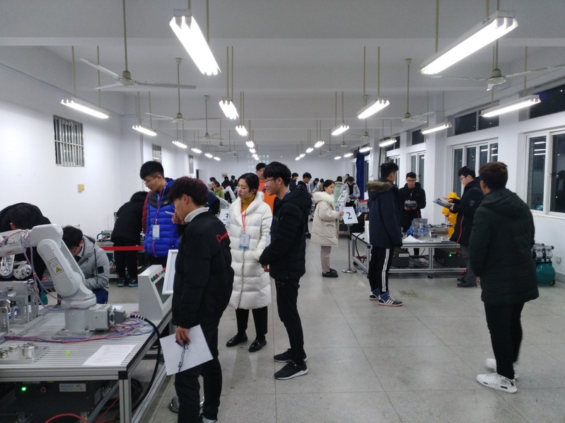 此次比赛内容为面向智能制造领域,利用工业机器人轴承自动装配单元,在1小时比赛时间内,通过机器人示教编程和自动运行,参赛队员和机器人协作完成轴承装配动作。经过4小时的紧张比赛,最终9支队伍获得一、二等奖并成功晋级首届安徽省老员工工业机器人应用大赛决赛,8支队伍荣获三等奖。