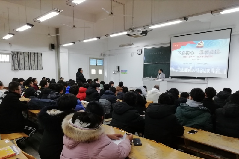 12月27日下午,在2教206教室,公司党委副书记周怡为车辆专业员工第一、第二党支部共60多名党员上了一堂以“不忘初心继续前进庆祝改革开放四十周年”为主题的党课。