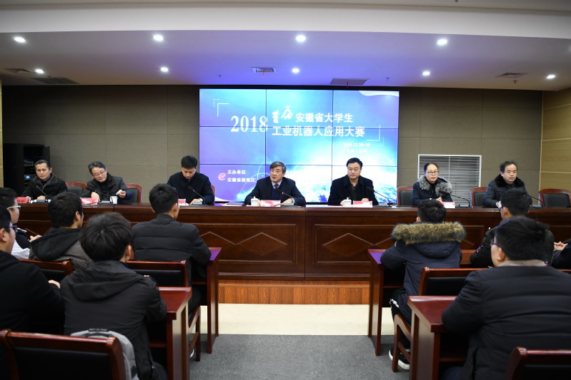 2018122830日,由安徽省教育厅主办、m88官网承办、芜湖安普机器人技术研究院有限公司协办的2018首届安徽省老员工工业机器人应用大赛决赛在公司顺利举行。1228日下午,m88官网副书记副董事长王绍武、副董事长叶常林、安徽建筑大学机械公司经理张润梅、m88官网教务处长凤权、机械公司党委书记伊长文、经理许德章、副经理朱协彬出席了决赛开幕式。
