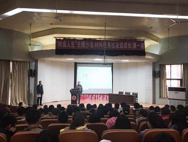 317日下午,“材成人生”主题沙龙第一期活动--“材料优秀员工话成长”在校学术报告厅举行。m88材料系08届员工郏洋洋(泰钢合金(深圳)有限公司营业经理)、焦克成(富士瑞鹄有限公司高级冲压工程师)和王刚(江苏车宜家新能源科技有限公司总工程师)应邀担任主讲嘉宾。机械公司党委书记伊长文、副经理朱协彬出席活动并致欢迎辞。沙龙由材料系主任冒国兵主持,教师代表刘琪、朱先琦、桂凯旋、周聪、程雷等以及200多名本科生参加了此次活动。本次活动由机械公司材料科学与工程系、材料系教工党支部及创客工作室承办。