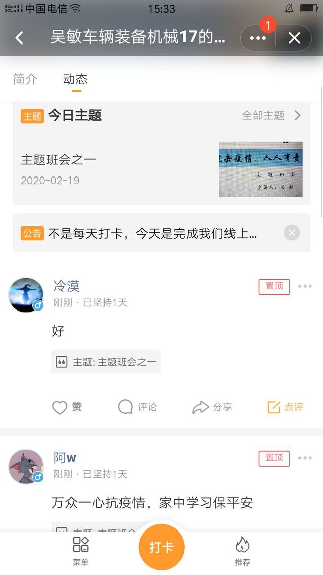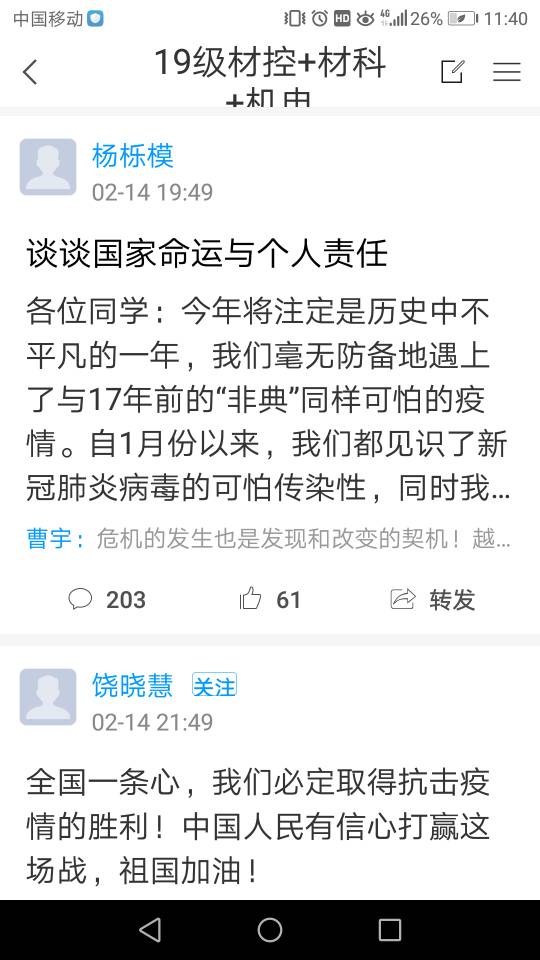 运用网络主题班会,做好思想引路人 在这场看不见硝烟的“战疫”中,社会涌现出无数一线医务人员和 “抗疫”工作者的感人故事。老师们通过QQ群、微信群、钉钉、学习通等线上平台,展开了热烈讨论,让同学们深刻体悟这个特殊时期爱国主义闪耀的光芒,引导青年老员工积极承担起社会责任,学会感恩和敬畏生命。同时,引导员工合理规划学习和休闲时间,做到“宅家”不懒散,“停课不停学”。在这个特殊时期,毕业班辅导员们,及时督促员工关注考研成绩公布和线上招聘渠道,尽量减少毕业生的思想焦虑,确保毕业生的安全稳定。