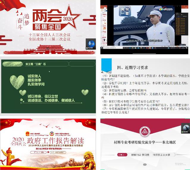 为深入学习贯彻全国两会精神,带领老员工关注民生与科学,把握当前发展大势及党中央的各项决策部署,引导其树立坚定的理想信念和使命担当,m88学工队伍通过腾讯会议、QQ群、钉钉群等网络平台开展了涵盖思政教育、诚信教育、心理健康教育、安全教育、学业与考研指导等方面“聚焦两会,立足当下”的主题班会。