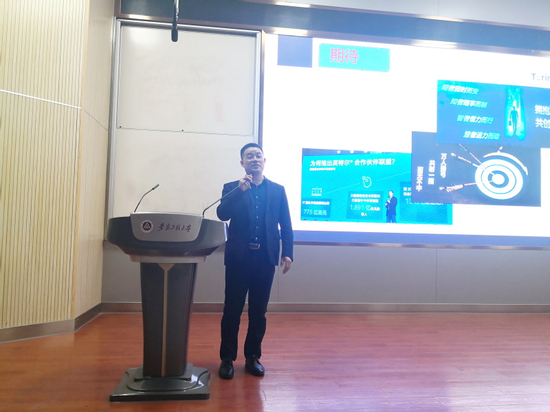 最后,他从“坚持”、“学习”、“职业规划”、“找准行业”、“员工资源”、“生态”、“平台”、“与时俱进”八个方面给同学们分享了“鸡汤”,提出了自己的建议,也表达了自己对未来的种种期待。幽默的语言、不俗的谈吐,引起台下阵阵掌声。互动环节,同学们积极提问,员工一一回答,现场气氛热烈。
