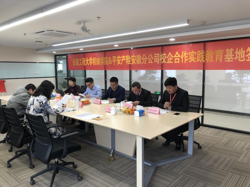 公司党委李文江副书记介绍了公司发展、专业设置、人才培养等情况,对平安产险安徽分公司对公司人才培养质量的肯定表示感谢。同时,就与平安产险徽分公司潜在的合作点进行了阐述,对合作模式,实习基地建设的具体方法与平安产险进行了深入交流。潘家保副经理表示能够与平安产险这样实力雄厚的企业合作建立实习基地,是一个难得的机会,该实习基地的建立有助于进一步提高公司人才培养质量和创新培养模式,可有效支撑员工非技术能力的达成,公司将会大力支持实习基地的建设。