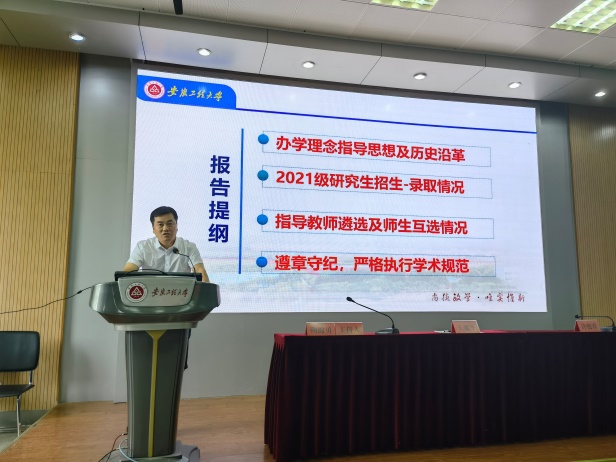 在入学教育环节,许德章代表公司领导向2021级研究生能够通过自身努力如愿考取研究生表示祝贺,并详细介绍了公司的学科体系、特色和优势,他希望各位研究生新同学能够珍惜学习的机会,立足新起点、迎接新挑战、力争创造新成绩,要求同学们调整状态,在新的学习阶段要有明确的奋斗目标,“做人”和“治学”两不误。王建平介绍了公司的办学理念和指导思想,以及公司公司产品的历史沿革,要求同学们牢记“三做”理念,不忘初心,努力学习,争做德智体美劳全面发展的新时代担当青年,随后他还向同学们通报了2021级研究生的招生-录取情况、指导老师遴选及师生互选情况,同时要求大家严格遵守公司的管理规章制度和纪录,严守正确的学术道德与学术规范,并跟同学们分享了一些学术不端的案例,教导同学们要端正学习和研究的态度。研究生秘书吴路路老师从研究生管理、培养方案、培养计划、课程设置、毕业要求、奖助体系等方面为同学们做了细致全面的讲解。