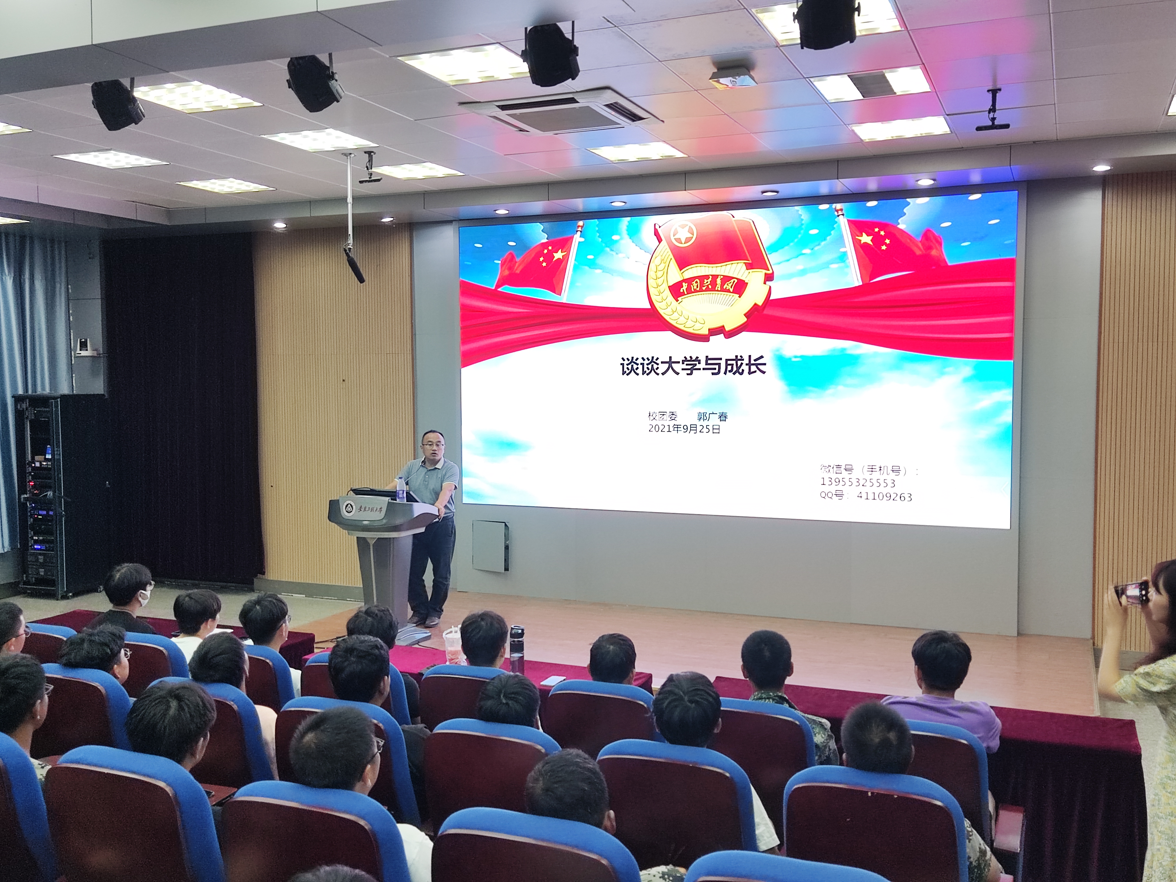 不忘初心与使命,从百年党史中汲取智慧和力量,刘德军则通过“读《论中国共产党历史》悟老员工成才之路”勉励新生学子要加强党史学习,积极继承党的成功经验和优良传统,并以实际行动积极向党组织靠拢。闫石以“礼仪与沟通”为主题,通过诙谐幽默的语言向员工讲解了正确的礼仪与沟通方式知识。郭广春从两个第一次、至少“两个没有”、一个理想与抱负、学习与实践入手与新生学子共话“大学与成长”,勉励新生学子要做最新的安工程人、做最勤的安工程人、做最美的安工程人。周宇航、潘颢及李增产三位优秀学长分别从志愿服务、网络信息素养及网络安全、学习方法掌握及学习习惯培养等方面进行了经验分享,充分发挥了员工先进典型的示范引领作用。