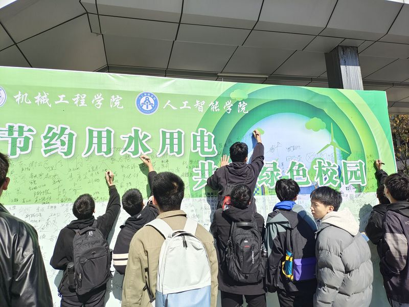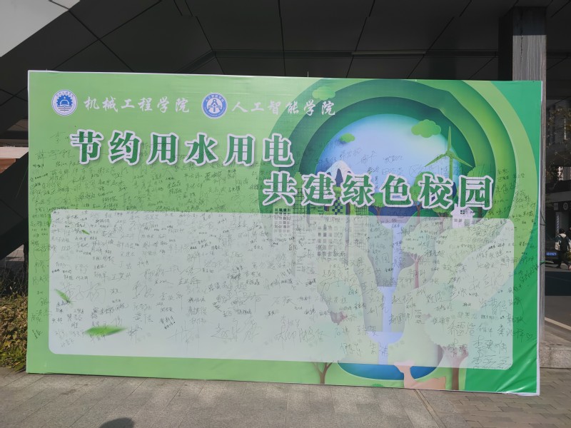 党员同学率先在活动签名墙上郑重地签上自己的姓名,表示节约用水用电、节约能源是每一位公民的社会责任,党员要做节水节电的倡导者、践行者、示范者。在党员同学的带动下,签名活动吸引了新校区的广大同学踊跃参与,大家积极在签名墙上签名,郑重承诺自觉肩负起节约用水用电责任,践行绿色低碳生活方式。