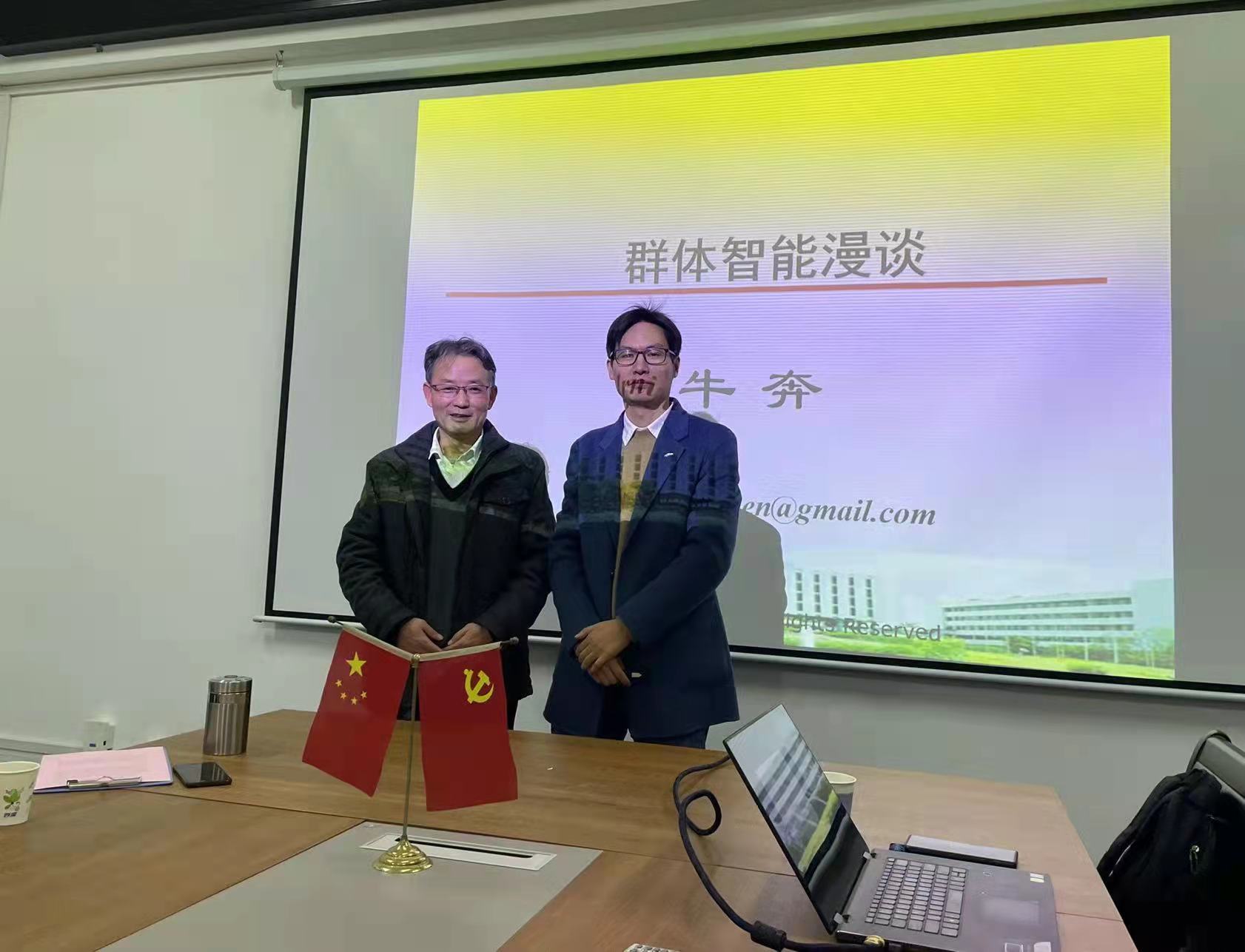 11月27日下午,在A座815会议室,深圳大学教授、博士生导师牛奔来校为广大师生作了一场题为《群体智能漫谈》的精彩报告。m88(人工智能公司)经理许德章教授、部分教师和研究生一起聆听了报告。