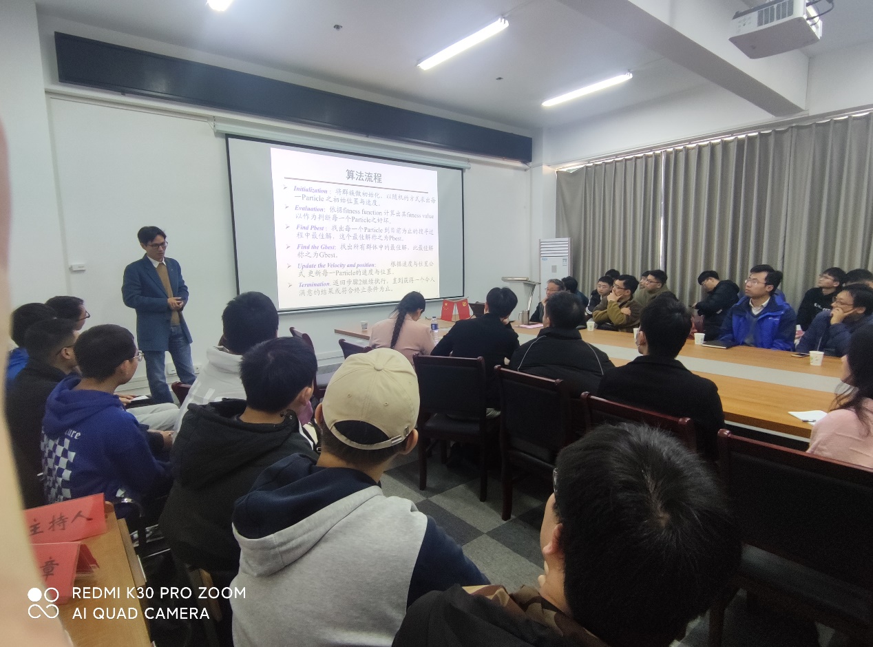 牛奔教授的报告分成四个部分:人工智能、群体智能、计算模型和成果转化。报告回顾了人工智能的发展历程,从复杂适应系统的角度对群体智能优化机理进行了阐述,介绍了几类典型群体智能优化算法(重点为粒子群算法(PSO)和细菌觅食算法)的基本原理、操作算子、基本流程和算法框架,提出了群体智能优化方法的提升方向及应用领域。报告内容深入浅出,对群体智能算法的基础和应用研究具有很大指导和借鉴作用。会议室座无虚席,与会人员踊跃提问请教,气氛相当热烈,会后,牛奔教授和相关专业教师就群体智能算法的细节问题进行了深入探讨,极大地开阔了教师和员工的视野,老师和员工受益匪浅。