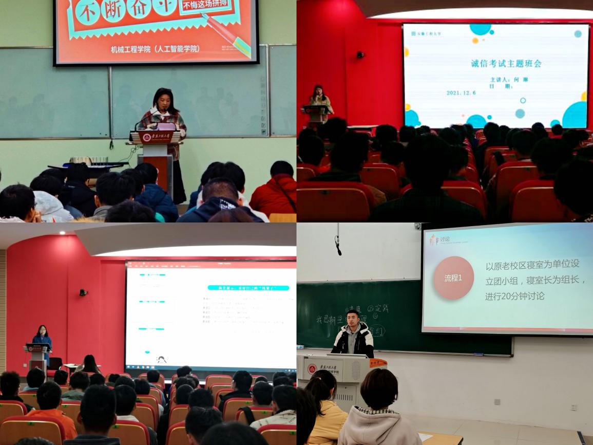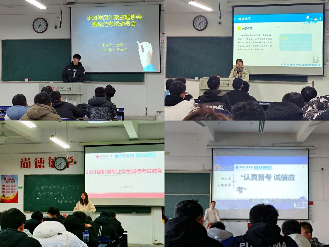 期末考试与研究生考试将至,m88(人工智能公司)全体辅导员结合各年级工作实际顺利完成12月份主题班会,重点围绕党史学习教育、诚信考试教育、毕业生考研就业指导、疫情防控与安全教育等主题开展教育宣传。