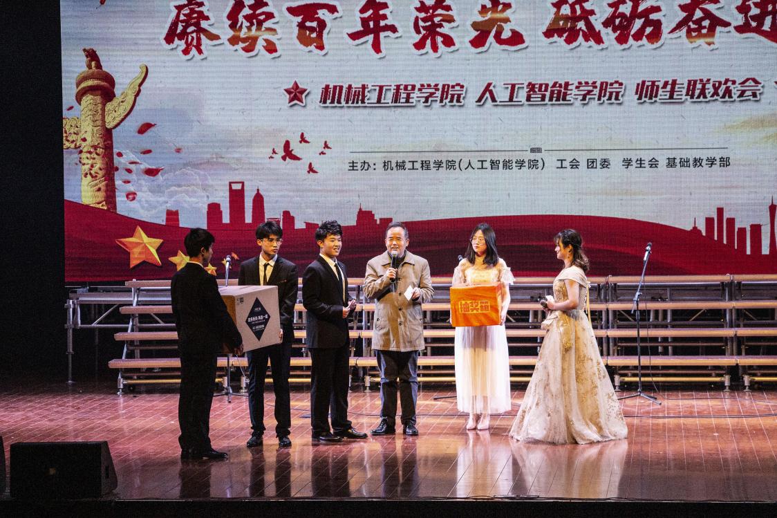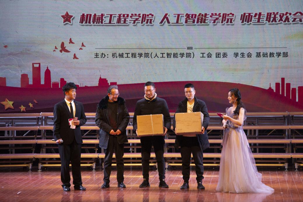 除了精彩的演出外,此次联欢会还有趣味十足、令人期待的抽奖环节。在主持人、礼仪队和工作人员的安排下,老师、同学们有序上台进行抽奖、领奖并合影留念。每一份用心准备的礼品都汇聚着祝福,分享着喜悦。