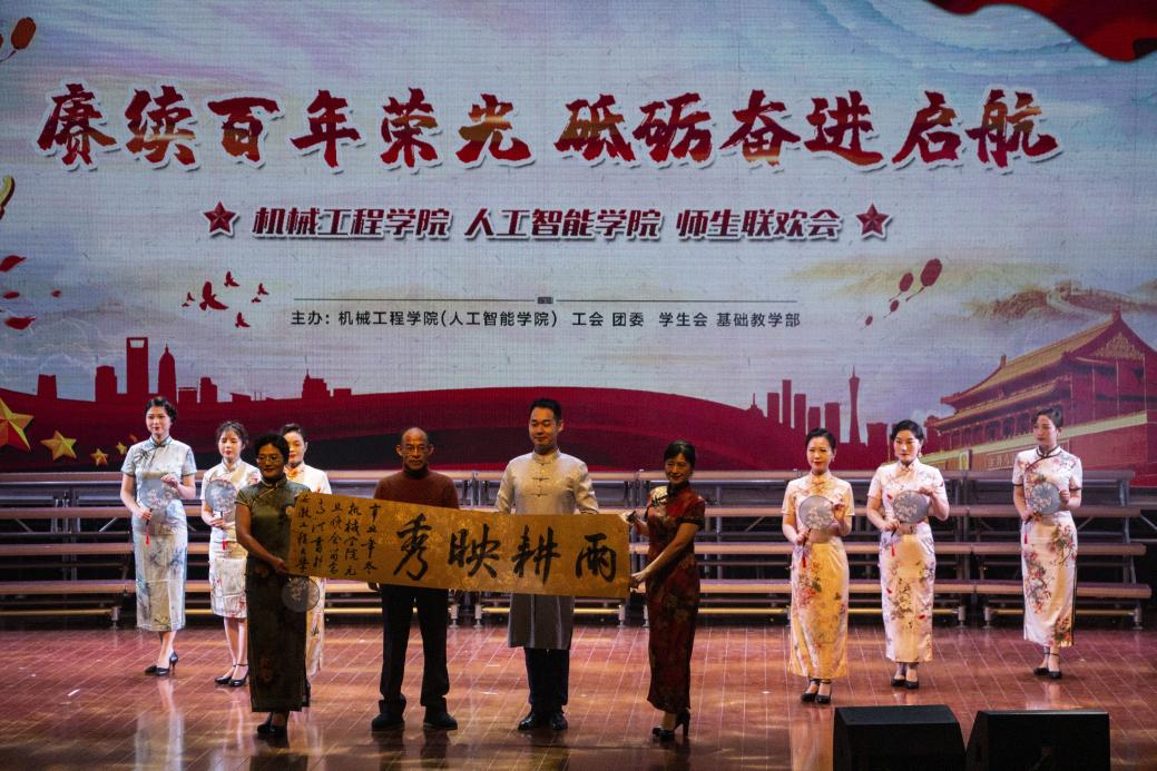 教职工歌曲联唱《十年》《可可托海的牧羊人》《安静》《少年》,悠扬的歌声娓娓道来青春的故事,带领在场师生回忆过往岁月;《雨耕映秀》将旗袍走秀与书法展示相结合,展现出公司教师的魅力与涵养;朗诵《我爱你,我的国》慷慨激昂,尽情表达着对党和祖国的自豪与热爱之情;师生大合唱《复兴的力量》,唱出了对中国特色社会主义道路的坚定信仰,唱出了对祖国繁荣昌盛的美好祝愿,唱出了师生昂扬向上的精神风貌。在领导老师与演员们合影留念后,本次师生联欢会画上了圆满的句号。