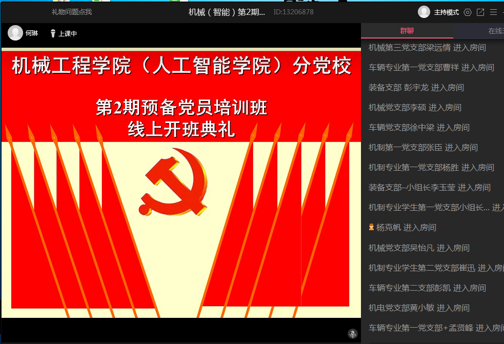 为深入贯彻落实党员教育管理工作的要求,加强对预备党员的培养教育,1月11日上午,m88(人工智能公司)分党校举行第二期预备党员培训班线上开班典礼。公司党委书记伊长文、副书记李文江、何志恒、培训班班主任及全体学员参加了开班仪式。开班典礼由李文江主持。