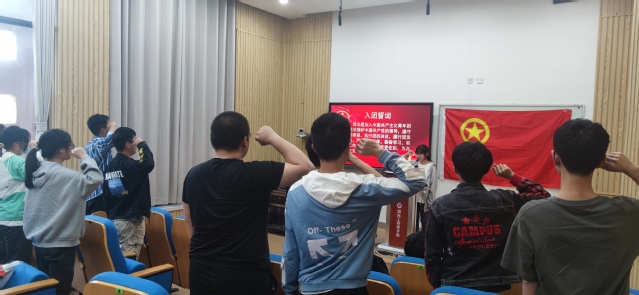 入团仪式正式开始前,全体与会人员共同观看爱国影片《1921》,并一起学习优秀先辈王稼祥先生的相关革命事迹,追忆百年党史,传承红色精神,弘扬爱国情怀。通过对老一辈革命者的进一步了解,更加激发了团员们的积极性。