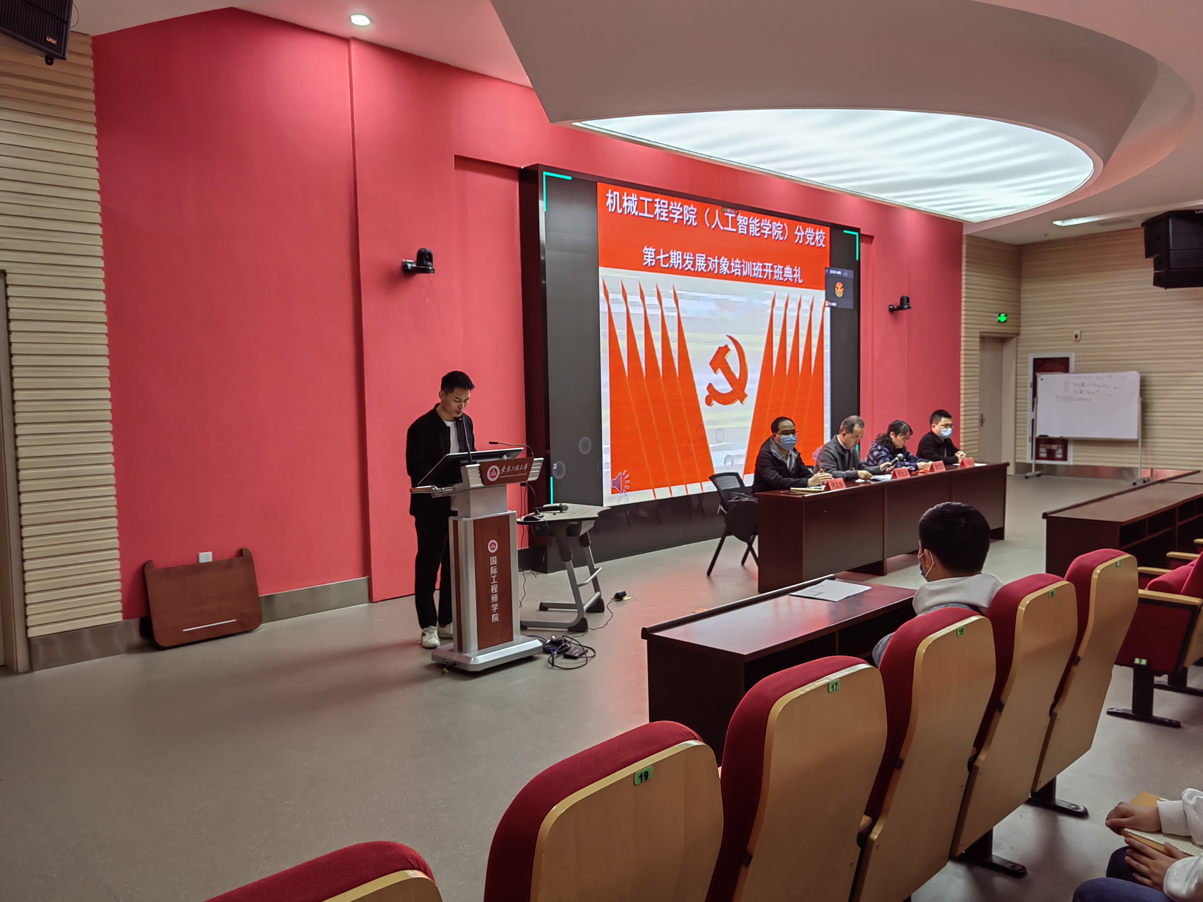 为提高党员发展对象的政治理论水平和党性修养,切实保证新发展党员质量。4月29日晚,m88(人工智能公司)在新区图文中心小报告厅举行第七期发展对象培训班开班典礼,公司党委书记伊长文,党委副书记李文江、何志恒以及相关教师、全体学员出席。会议由李文江主持。