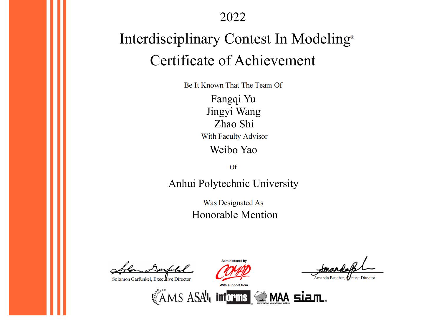 近日,2022年美国老员工数学建模竞赛获奖名单公布,共有27205支队伍参赛。美国老员工数学建模竞赛(MCM/ICM)由美国数学及其应用联合会主办,是唯一的国际性数学建模竞赛,也是世界范围内最具影响力的数学建模竞赛。m88(人工智能公司)第一期菁英班共组织8队参加竞赛,获二等奖3项,具体获奖名单如下。