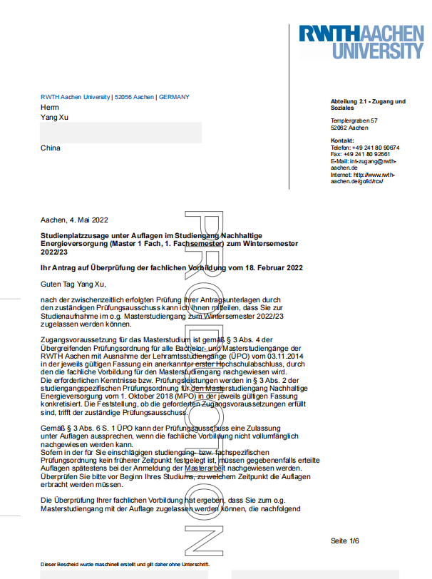 1 | 徐阳 | 车辆181 | 亚琛工业大学 |