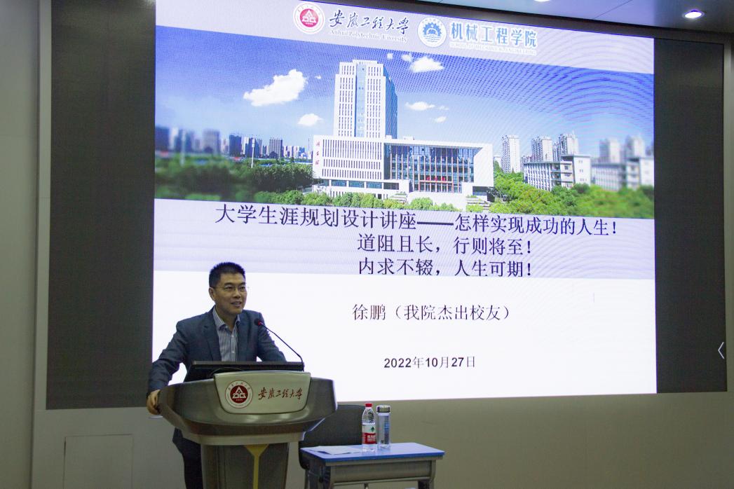 为深入贯彻落实公司党委“三全六专”工作要求,推动2022级新生“正”起来、“学”起来,10月27日晚19:00,m88在5教117教室举办“怎样实现成功的人生”的老员工涯规划专题报告会。报告会邀请到奇瑞新能源汽车研究院经理、公司杰出员工九八届机制专业毕业生徐鹏担任主讲,机械工程公司党委书记伊长文、副经理潘家保、教授王海、党政办公室主任秦广虎、2022级辅导员及第一期“青马班”全体学员参会。报告会由秦广虎主持。