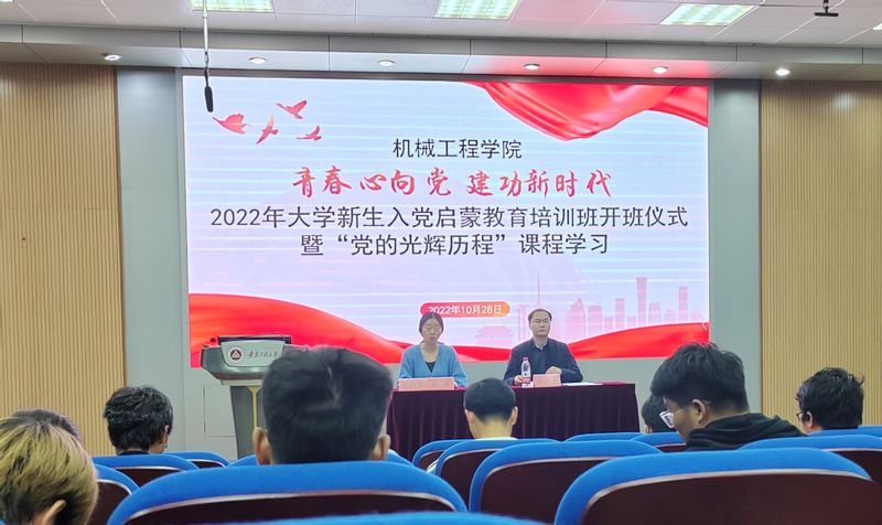为进一步端正青年学子的入党动机,引导他们听党话、跟党走,1028日下午1700,m88在5117举办2022级新生入党启蒙教育培训开班仪式。机械工程公司党委副书记秦广虎、2022级辅导员徐倩、孙志鹏及培训班全体学员参加开班仪式。开班仪式由徐倩主持。