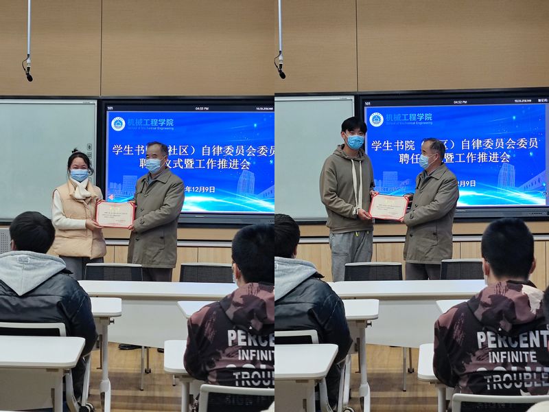 会议伊始,伊长文为自律委员会的楼长代表颁发聘书并合影留念。伊长文代表公司党委对同学们在和谐书院(社区)建设中的付出表示感谢,对担当善为的工作劲头表示肯定。