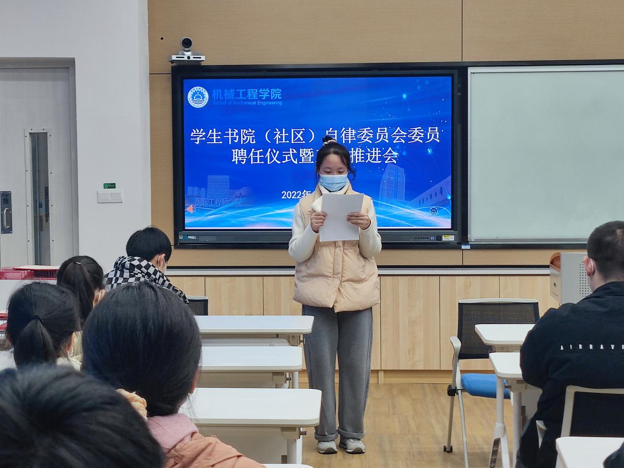会上,秦广虎介绍了自律委员会的工作内容和职责要求,他指出,员工书院(社区)已成立“寝室长—层长—楼长”网格工作组,旨在将以单栋书院楼为单位的点状育人空间进行延伸和辐射。他强调,要打造集“文化创享”“学习共享”“生活乐享”为一体的多功能员工社区园地,需要全院师生共同努力,需要多措并举筑牢合力,需要青年学子们主动担当敢于作为。他希望,所有成员认真履行职责,引领全体员工积极参与到文明校园建设中来。