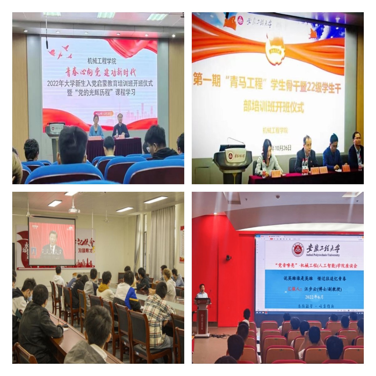 强化“正”引领,筑牢思想根基,坚持做好青年学子的引路人。重点围绕基层党支部创优争先、思政体系建设、党团学一体化建设、网络新媒体平台建设、党员师生先锋作用发挥等采取推进措施。强思想引领,重理论武装,开办“入党启蒙教育”培训班、各类分党校培训班、“青马工程”培训班、党员集中学习培训班,培训近2000人次,提交入党申请书1366人;组织开展集中收看党的二十大开幕会、“学习宣传贯彻党的二十大 我为申博做贡献”“强国有我请党放心”“喜迎党的二十大,奋斗新征程”“学习党的二十大 党课正开讲”等党的二十大系列主题活动;举办资助诚信教育主题活动、《员工手册》知识竞赛、“抗击疫情,党员先行”实践活动;召开第一届员工代表大会;依托公司团委微信公众号开设“青年说”“青年微榜样”“青年分享”“感‘械’研途”等系列推文栏目,强化榜样引领作用,筑牢网络新阵地;举办以“青春厚植信仰,绽放绚烂之花”“说英雄谁是英雄,昔过往追忆青春”为主题的“党音嘹亮”大讲堂品牌讲座2场;邀请离退休老教师赵国庆做“十万里红色骑行 学党史致敬经典”专题报告。继续强化研究生工作室“红色读书角”建设,共同品读红色经典书籍。做到理论学习全覆盖、政策宣传全覆盖、行动实践全覆盖。机械182李增产获“中国老员工自强之星”奖学金,机制205朱哲枭2022年安徽省老员工年度人物提名荣誉称号,机电201张晨荣获“外研社·国才杯”全国英语演讲、阅读、写作大赛(安徽赛区)一等奖,机械20级研究生杨克帆荣获省级研究生“党员标兵”荣誉称号。