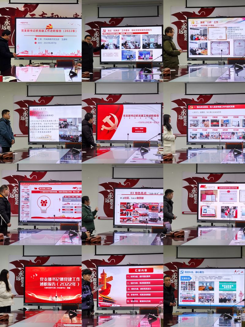 会前,伊长文向各党支部书记说明了本次述职评议会的要求和流程,强调各述职人员要严格按照述职评议考核的内容进行汇报。会上,各党支部书记立足实际,将自己摆进去,将“我”剖析好,重点围绕履职情况、落实“三抓”和“三全六专”育人工作情况、工作特色、存在问题与原因、下一步工作打算等方面作详细汇报。与会人员结合相关材料及评分指标体系对各党支部书记抓党建工作落实情况及党支部工作整体情况进行评议和量化打分。