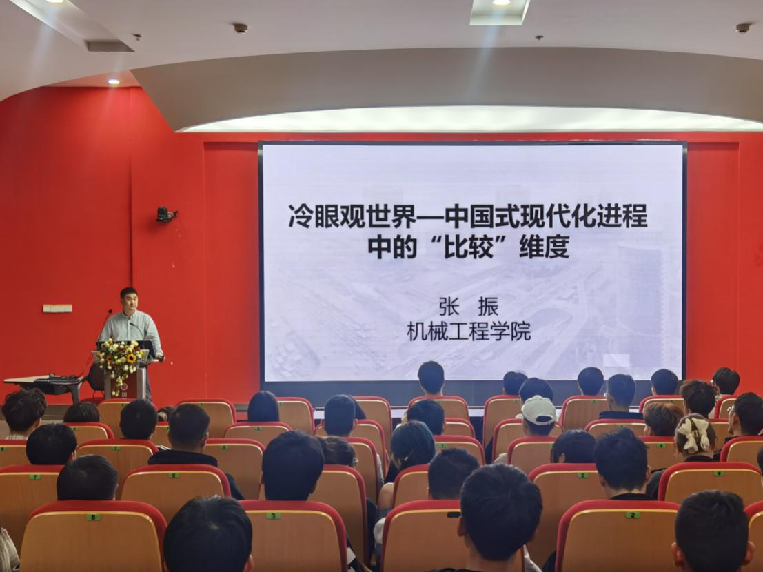 为拓展青年学子的国际化视野,努力造就理想信念坚定、专业知识扎实的有为人才,推动员工“正”起来、“学”起来,根据公司党建品牌建设活动安排,4月28日,m88在国际工程师公司小报告厅举办“党音嘹亮”大讲堂活动,邀请m88仪器系副主任张振副教授作《冷眼观世界——中国式现代化进程中的“比较”维度》专题讲座。公司大讲堂负责人时慕天、2021级入党积极分子100余人参会。讲座由时慕天主持。