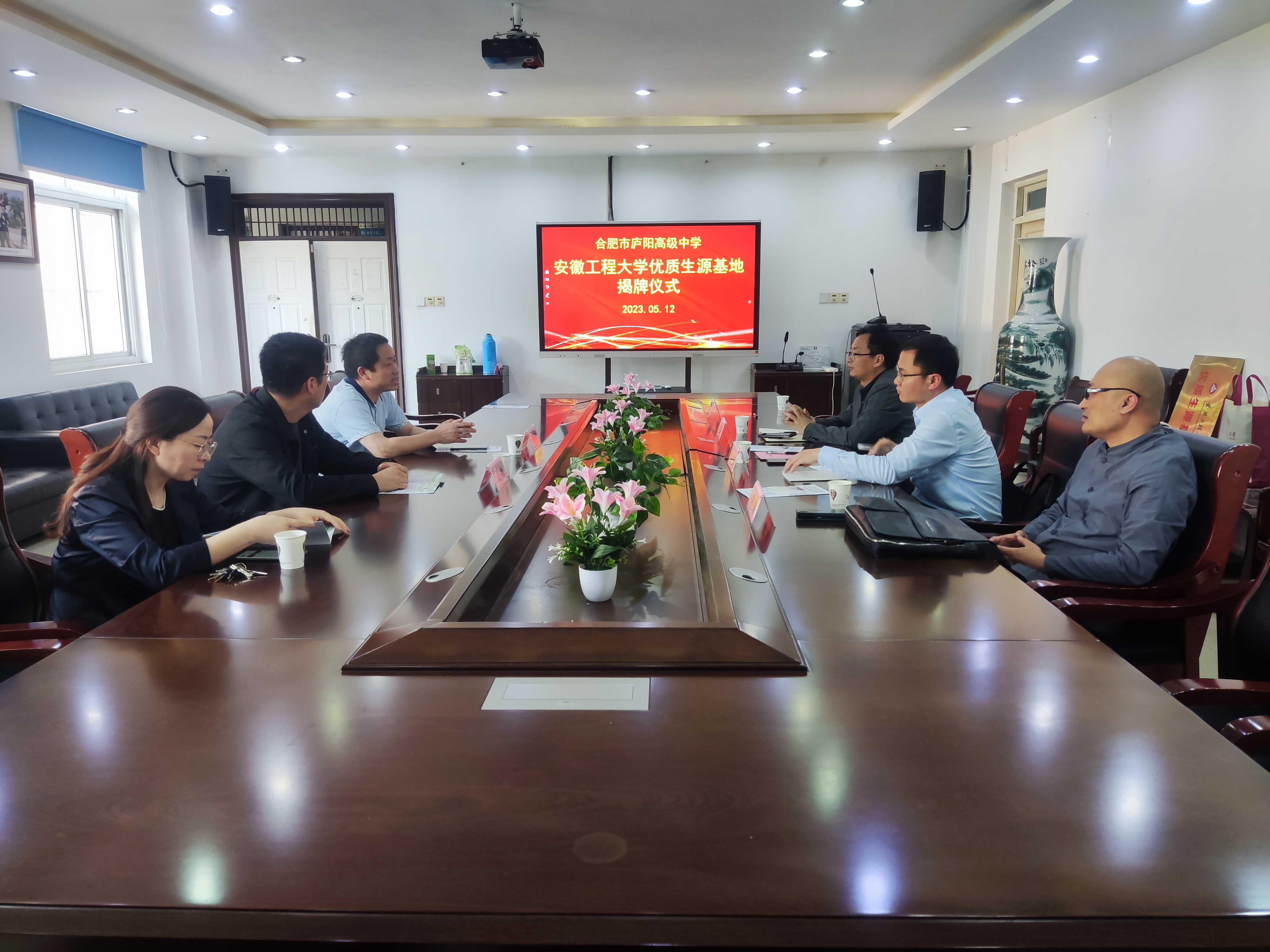 为进一步提高公司生源质量,加强公司与各地区高中的交流合作,5月12日,m88党委副书记秦广虎、机械工程系疏达教授等一行赴合肥市开展招生宣传,与合肥市庐阳高级中学、长丰北城衡安公司两所高中签订优质生源基地协议并授牌。