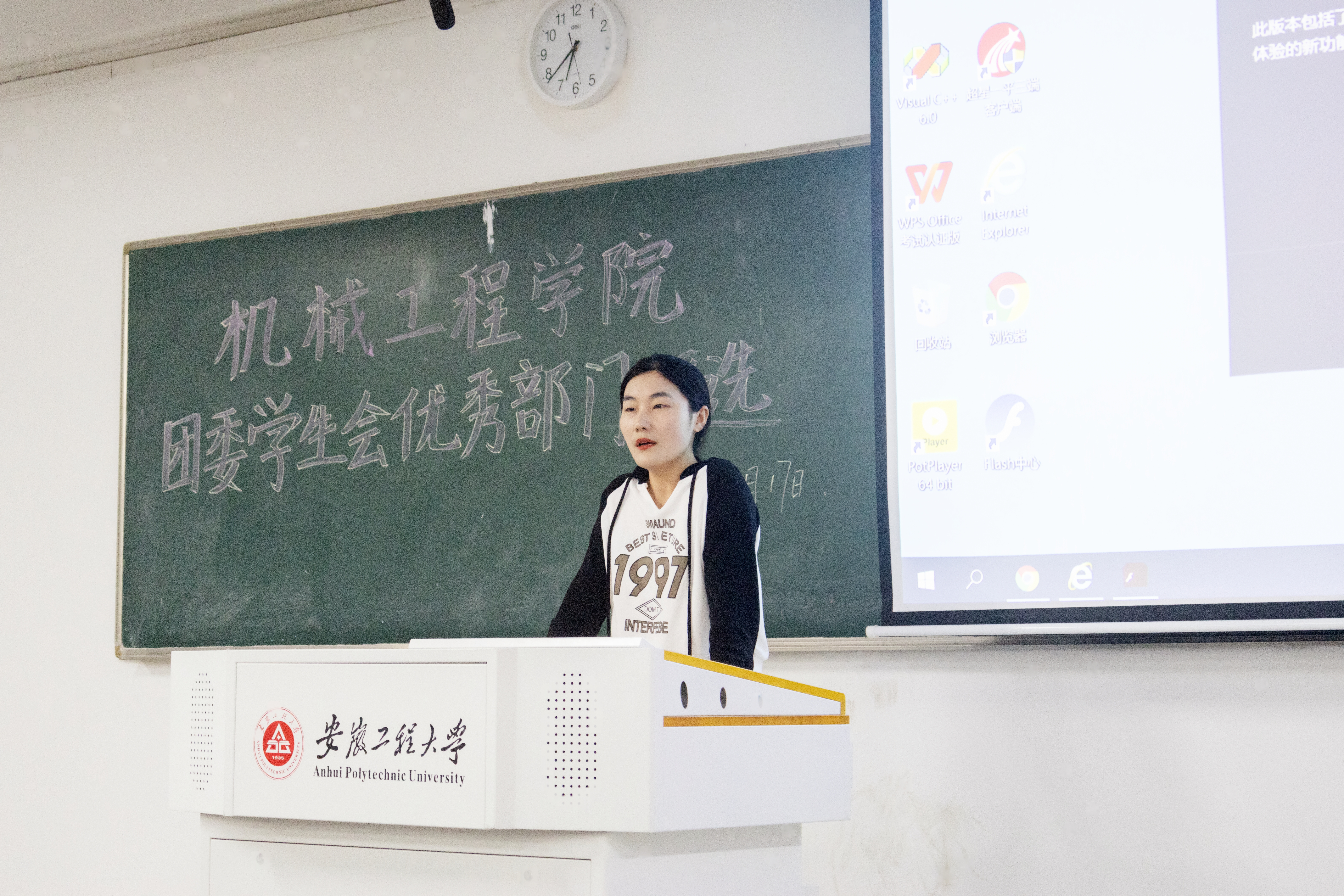 活动第一项,各部门代表依次上台进行工作总结汇报。汇报从“部门介绍”“组织建设”“活动开创”等方面进行展开,汇报过程中,各部门代表语言风趣,各具特色,会议氛围轻松热烈。台下团委员工会成员认真聆听,热情鼓掌,并根据各部门代表的汇报情况进行公正评分。