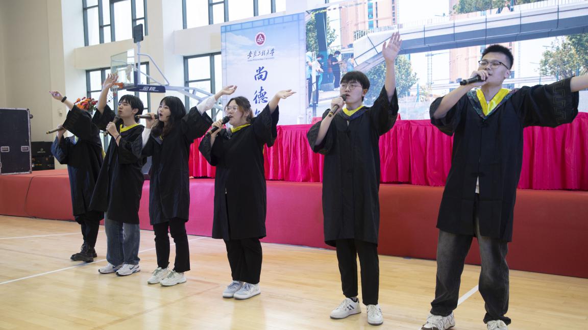 大屏幕中循环播放了为毕业生精心制作的系列视频,待现场人员落座,轻松欢快的音乐响起,典礼缓缓拉开序幕。歌曲《那些年》饱含了毕业生对青春的怀念、对未来的希冀、对同窗的祝福。