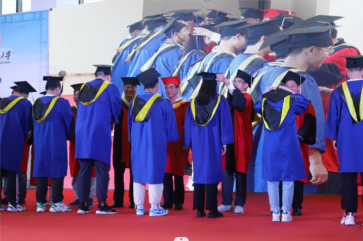 毕业典礼在抽奖和教师合唱中完美落幕。典礼后,卢平与公司教授委员会成员逐一为毕业生拨穗并合影留念。