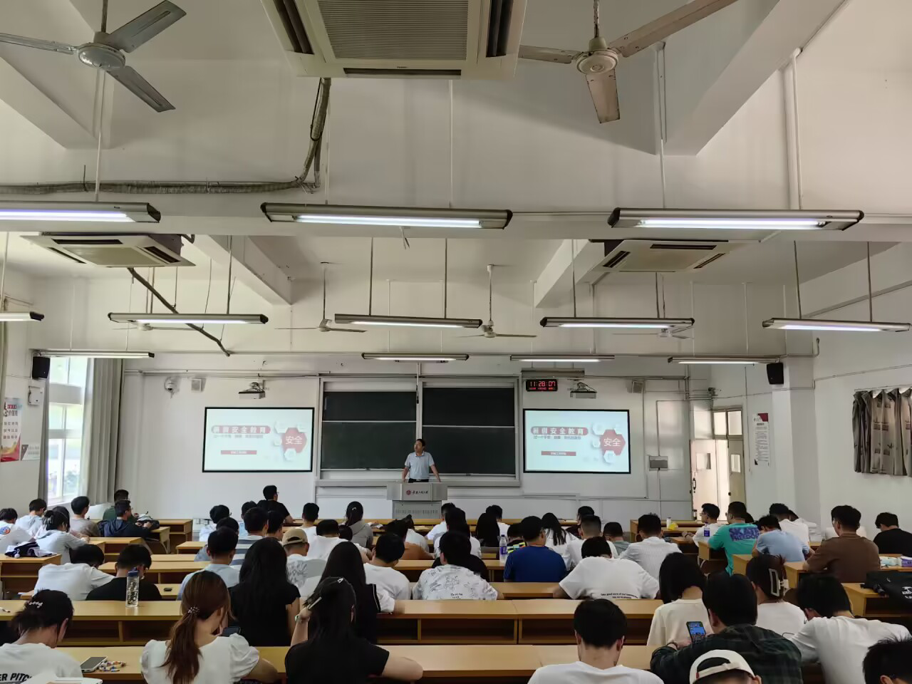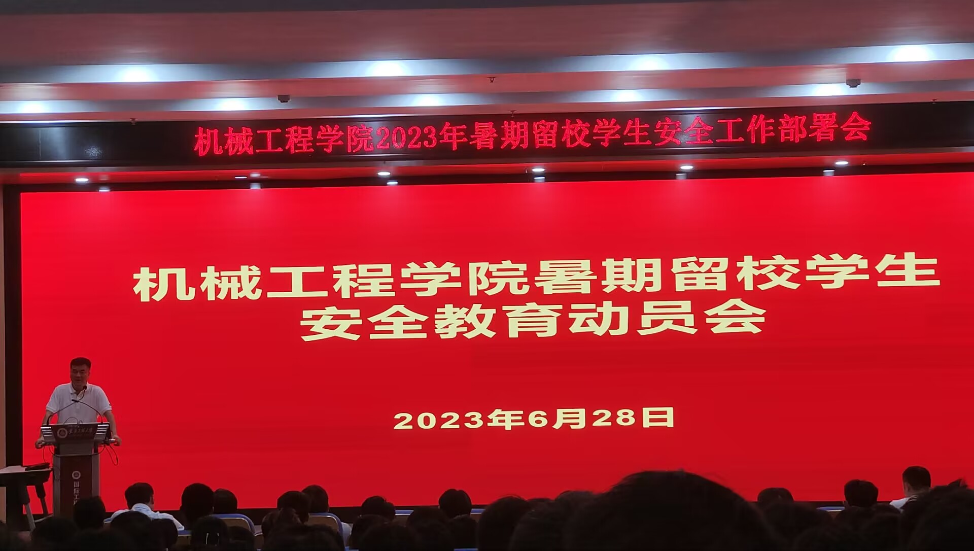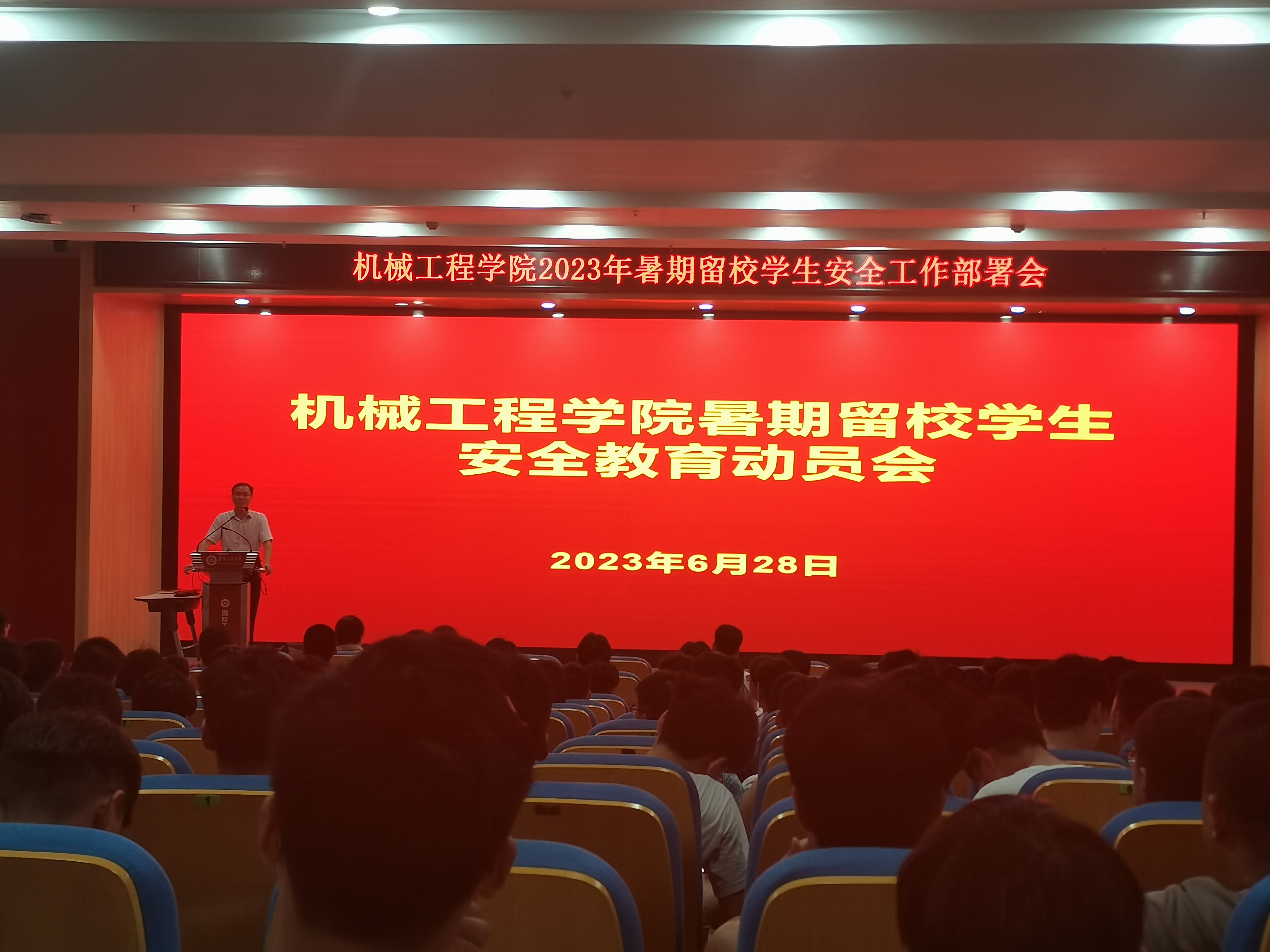 6月28日,m88在两校区针对本科生和研究生分别召开暑期留校员工安全教育大会,经理王建平、公司党委副书记秦广虎、副经理潘家保、专业老师代表、全体辅导员和暑期留校员工参加会议。