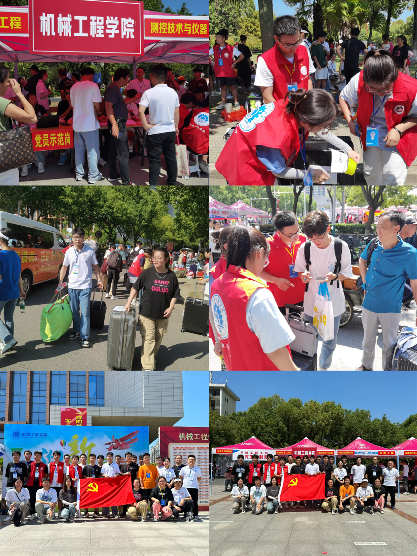 党旗飘扬、党徽闪光、党员示范,正能量在迎新一线传递。公司高度重视党员在迎新工作中先锋模范作用的发挥,以各党支部为支撑,积极动员、强化落实,掀起党建引领全员参与的迎新工作局面。迎新当天,公司设置党员示范岗,组织了70余名师生党员参与到迎新工作,他们穿着红马甲、佩戴着党员徽章,活跃在校园的各个角落,传递着正能量,用实际行动为新生提供全方位的服务。