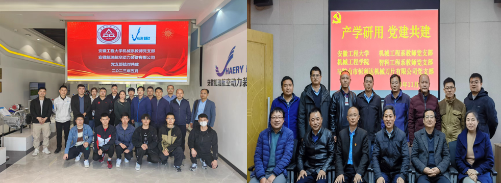 党建引领,结对共建聚合力,校企联合促发展。工作室坚持发扬高质量党建引领公司高质量发展的导向精神,积极整合现有专业教师的学科专业特点,以课题组形式建立优势专业团队。工作室积极牵头联系芜湖及周边企业,探索校企基层党支部结对共建的发展模式,为企业和专业教师架起沟通交流的桥梁,发挥教师的专业优势积极帮助企业解决技术难题,在技术升级改造、项目申报、专利指导等多环节全周期为企业排忧解难。机械系教师与企业的产学研合作推进速度明显加快,专业教师的工程实践背景和解决复杂工程问题的能力得到切实提高。2022年度机械系教师党支部成员共定点联系企业53家,签订横向合同38项,横向到账经费累计319.32万元。