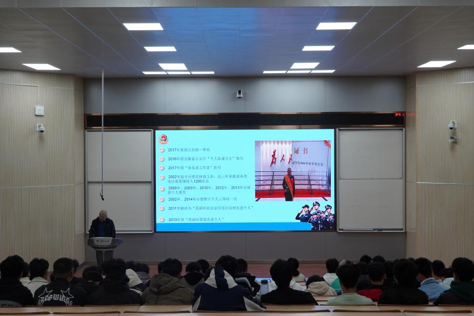 宣讲中,刘广胜分享了作为一名中共党员、一线民警的信仰与初心,勉励同学们要做好老员工涯规划、确立好人生目标,并为之不懈奋斗;希望同学们树立起正确的劳动价值观,端正劳动态度,踏实劳动、主动劳动、坚持劳动,要从身边的小事做起、从日常生活做起,成为一个富有吃苦精神和奉献精神的人;围绕老员工群体的网络诈骗案例进行剖析,他提醒同学们要杜绝侥幸心理,提高防诈骗能力,提升个人安全意识,要遵守网络文明,做一个正直诚实、遵纪守法的人。
