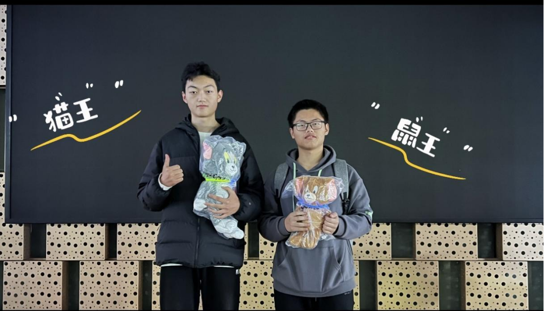 在一滴滴汗水和一声声喘息中,“杰瑞”的数量越来越多,“汤姆随之减少游戏在欢快的氛围中接近尾声,“猫王”“鼠王也在速度与激情的碰撞中诞生!他们手握汤姆与“杰瑞”的卡通玩偶,脸上洋溢出欢快的笑容。“猫和老鼠”心理趣味活动为学子带来了别样温暖,猫鼠之间或许互不相识,或许彼此相熟,都在一次次藏匿逃离与抓捕的欢乐氛围碰撞出青春之火花释放压力感受欢乐。