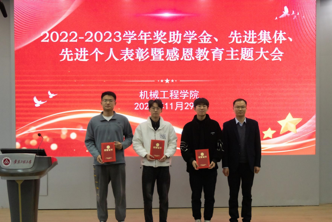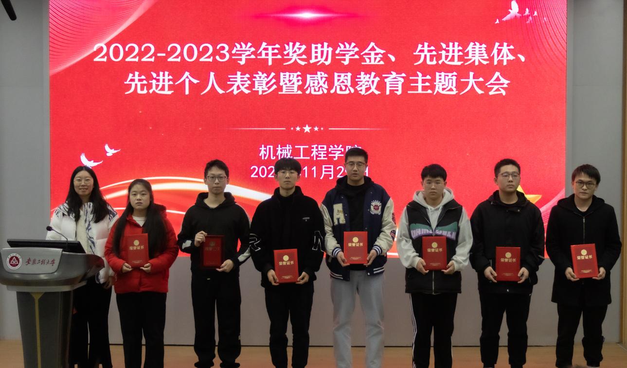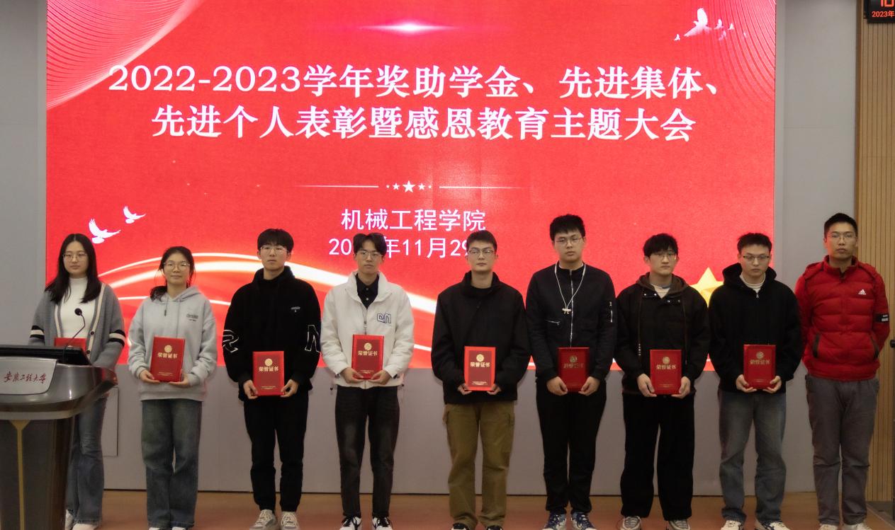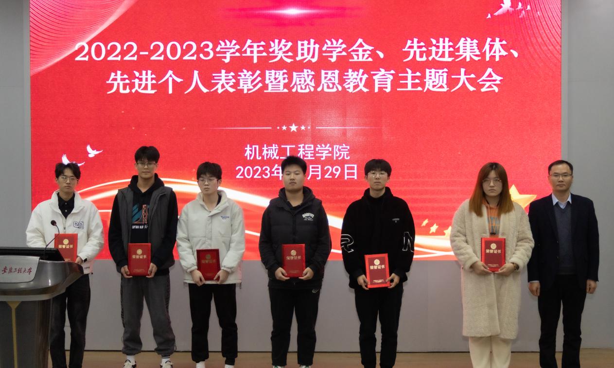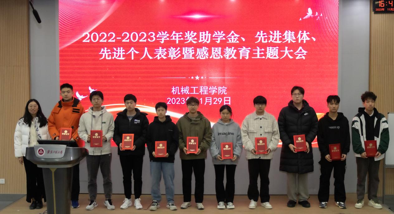 国家奖学金获得者、国家励志奖学金获得者代表、校特等奖学金获得者代表、各类先进个人标兵、六专之星、先进班集体代表先后上台,与会老师为他们颁发了荣誉证书并合影留念。