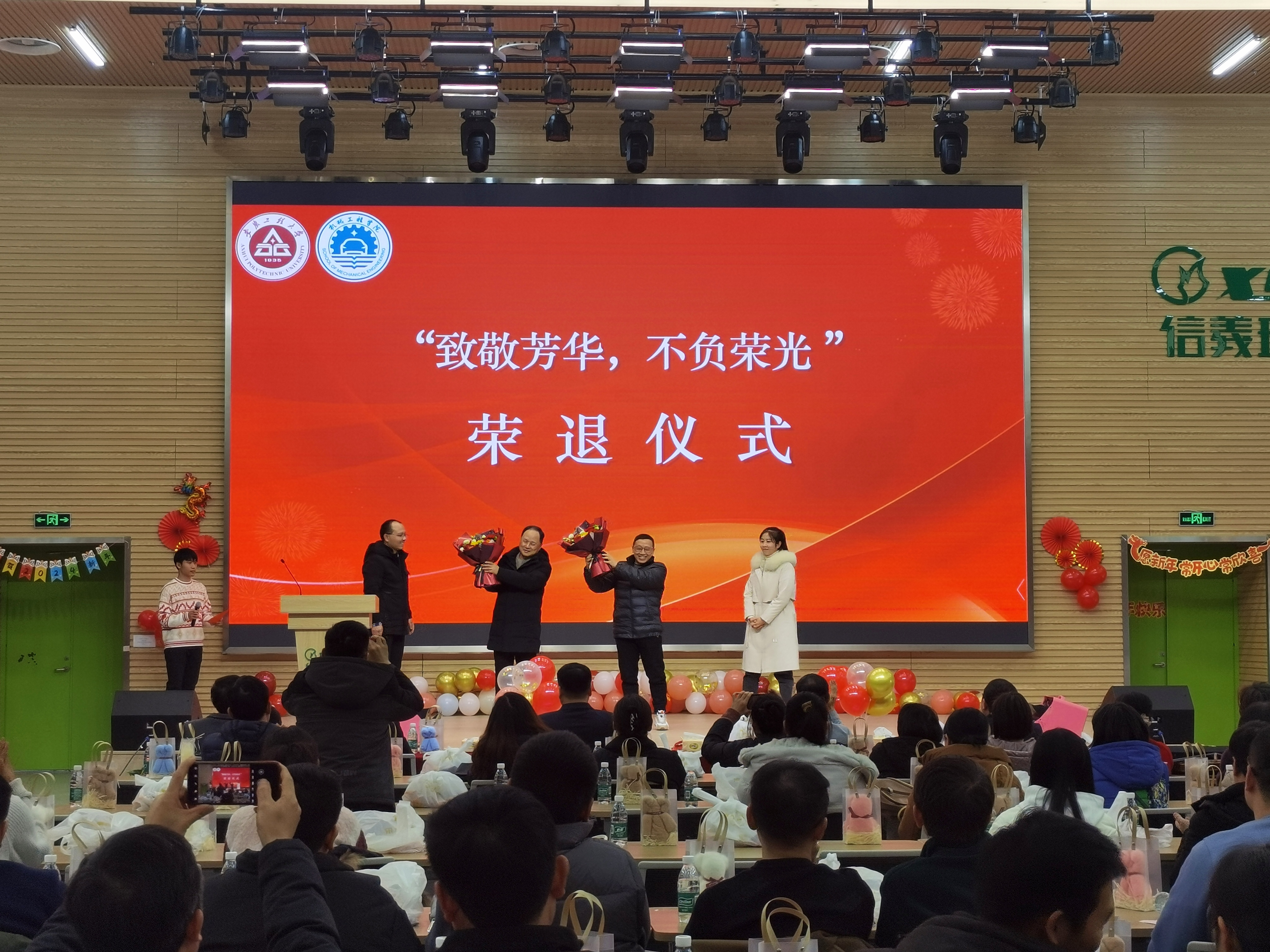 退休职工荣退仪式环节,全体教职员工向汪太平、杨明两位老师致以最崇高的敬意和最真诚的祝福,青年教师代表为他们献上了鲜花。两位退休教师纷纷表达了对公司的感激和祝福之情。