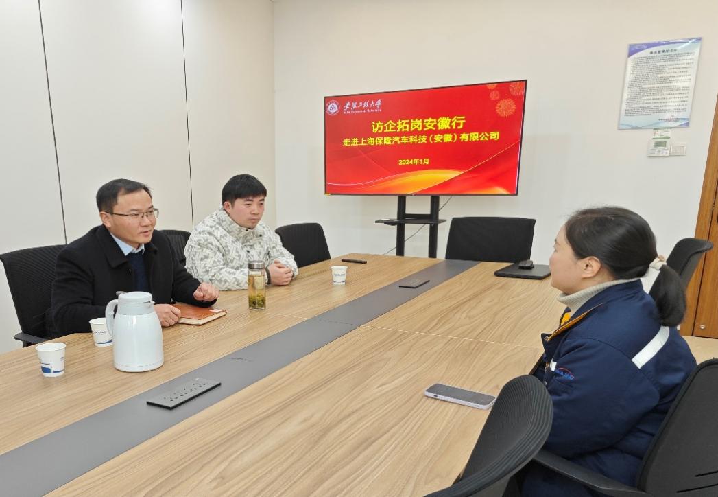 为进一步深化校企合作,拓宽毕业生就业渠道,1月23日,机械工程公司党委副书记秦广虎带队走进合肥经开区,参观上海保隆汽车科技(安徽)有限公司和中国化学工程第三建设有限公司,并开展座谈交流。