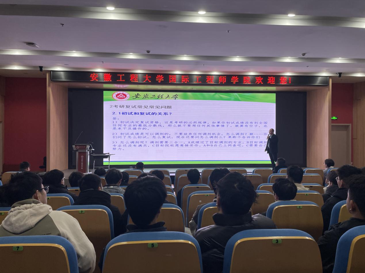 王风涛首先对同学们在考研初试中取得的优异成绩表示祝贺,并通过梳理今年全国研究生招考的形势,并基于前期对机制专业考研初试成绩的摸排情况,针对同学们普遍关注的复试和调剂事宜需注意的要点进行分析。随后,青年教师王安恒从专业知识准备、面试技巧、心理调适和院校调剂等方面为同学们做了周到详尽的讲解,并强调了复试一定要坚持到底、调剂一定要多方面搜集信息;扎实的专业课功底,良好的英语口语和表达能力是顺利通过面试的前提;复试准备过程中一定要兼顾毕业设计等问题。