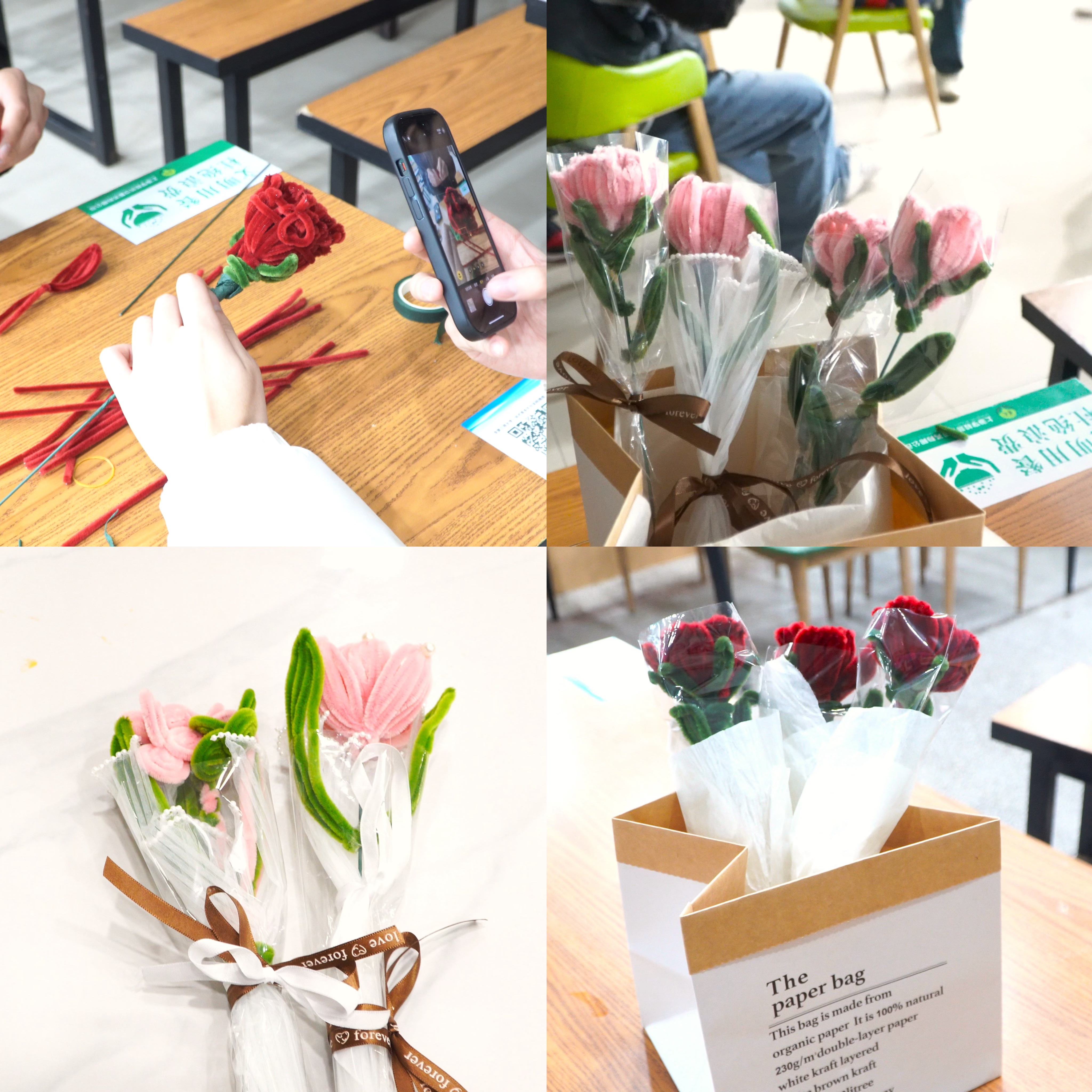 活动采用制作手工扭扭捧花的方式进行,经过前期宣传,共吸引了50余名员工参加。为了确保活动顺利进行,公司精心准备了足够的酒红玫瑰、粉红郁金香、樱桃粉玫瑰三种花的制作原料及必需工具。活动现场,参与同学跃跃欲试,结合网络教程视频和自身经验,手脑并用、专心制作,积极交流、气氛热烈,经过2个小时的不懈努力,一朵朵美丽的花便呈现在大家面前。车辆201郭晟晟表示,此次活动有趣、有料、有意义,我们可以从中感受到做手工的快乐,也可以通过团结协作增进同学间的感情。
