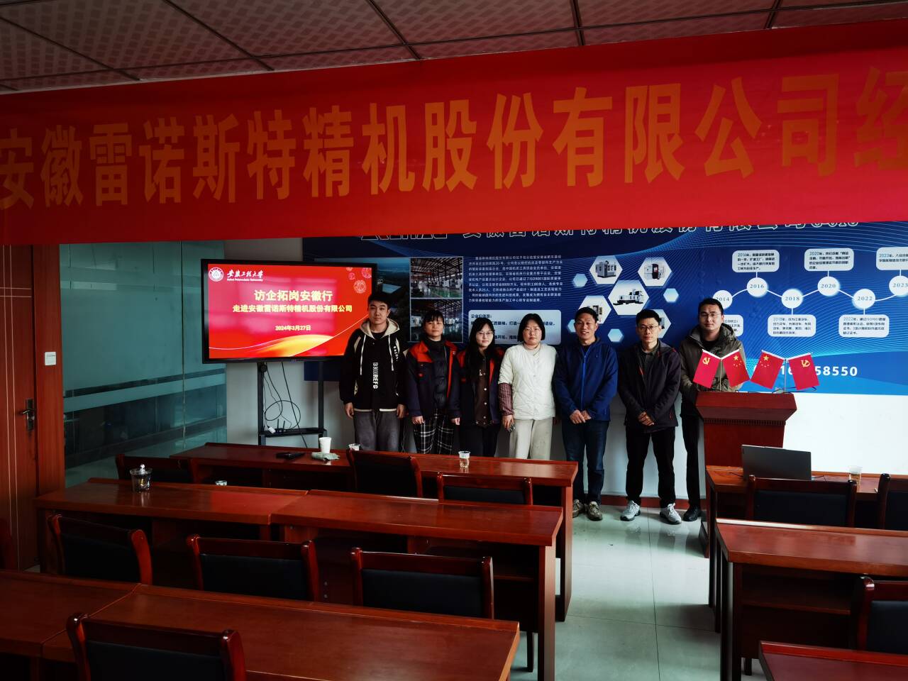 安徽雷诺斯特精机股份有限公司是以数控机床及零部件生产为主的装备制造企业,具有近二十年机械生产的历史,已形成独立的产品设计、制造及工艺实验能力。王建彬感谢企业的热情接待,并详细介绍了公司发展历程、学科专业建设及毕业生情况。双方就产教融合、员工实习实训及毕业生就业进行了充分交流,达成初步合作意向。公司历届部分在公司发展员工参加了对接会。