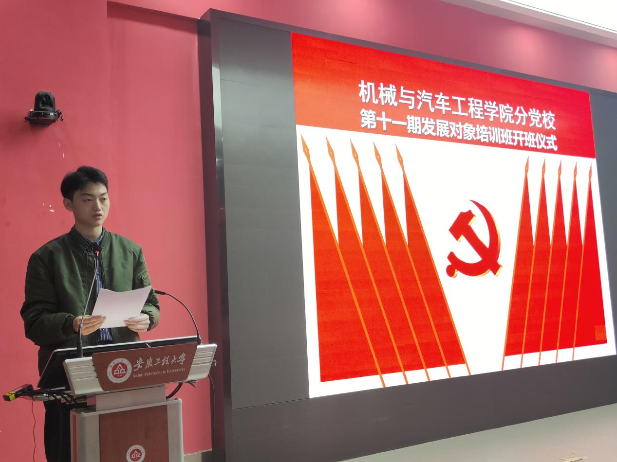 4月16日,机械与汽车工程公司第十一期发展对象培训班开班仪式在国际工程师公司校区小报告厅举行。公司党委副书记秦广虎、培训班班主任徐倩和全体学员出席。开班仪式由徐倩主持。