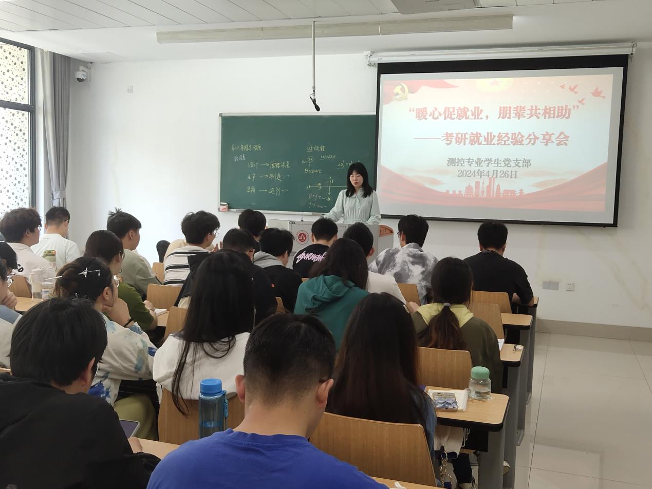 为帮助测控专业员工尽早明确方向、做好规划,指导他们顺利走好就业及考研之路,4月26日,测控专业员工党支部在学习中心X206教室开展以“暖心促就业,朋辈共相助”为主题的就业考研经验分享会,支部党员、2020级和2021级测控专业部分员工参与其中。活动由支部书记时慕天主持。