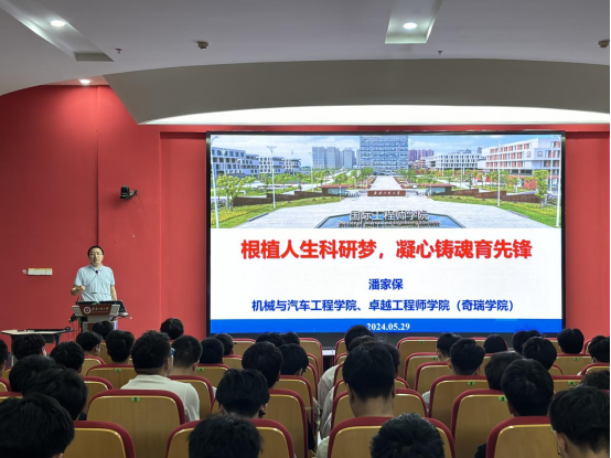 5月29日,机械与汽车工程公司在国际工程师公司梦溪报告厅举办“党音嘹亮”大讲堂活动,本期活动邀请机械与汽车工程公司副经理、卓越工程师公司(奇瑞公司)执行经理潘家保教授作《根植人生科研梦,凝心铸魂育先锋》专题讲座。公司大讲堂负责人时慕天、2022级党员和入党积极分子100余人参会。讲座由时慕天主持。