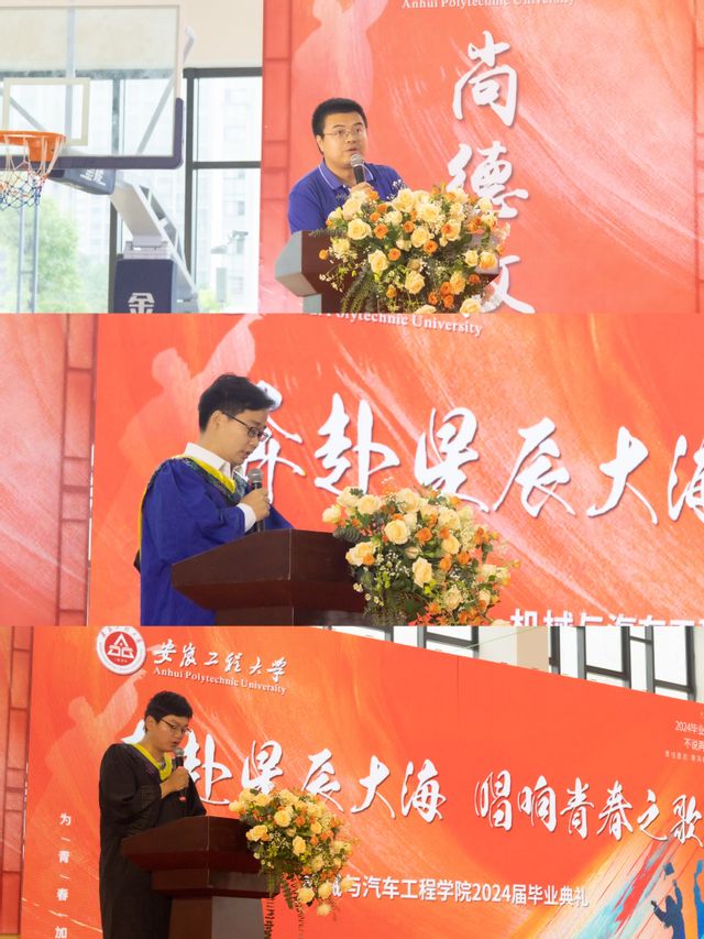 公司党委副书记秦广虎宣读了《关于表彰2024届优秀毕业生和毕业生先进个人的决定》。机械工程系副主任王风涛代表全院教师表达了对同学们的祝贺与嘱托,希望同学们能够坚定信仰,将个人发展融入国家需求;坚定理想,用奋斗架起通往成功的桥梁;常怀感恩,保持纯真与善良。方旭、朱哲枭分别作为毕业研究生、本科生代表发言,他们回顾了自己的求员工涯,表达了对公司的感谢之情,展望了未来的美好生活,表示会带着母校的祝福与期待,脚踏实地走好未来的每一步。