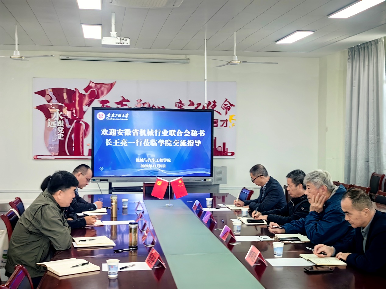 11月8日,安徽省机械行业联合会秘书长王亮、执行副会长冯皖东、李继香及副秘书长梅明胜一行来院调研交流。m88经理王建平、各系部主要负责人和科研秘书参加了座谈会。会议由王建平主持。