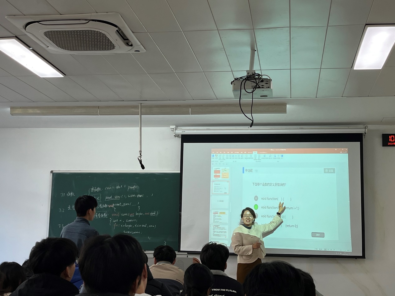 本次示范教学由张季琴老师主讲,讲授内容为《计算机程序设计基础》课程第七章用函数实现模块化设计。张老师从实际编程问题出发,引入“函数”概念,深入浅出的阐述了学习“函数”的必要性和重要性。通过实例详细讲解了函数的定义与调用方法,并通过雨课堂平台设置随堂问题,及时了解员工对知识的掌握情况,并提供即时反馈与讲解,有效促进了师生间的互动。